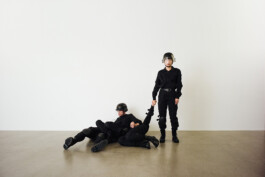 Conflict under the microscope: Isaac Chong Wai’s Work Rehearsal of the Futures: Police Training Exercises takes a look at political protest movements and their recurring elements. The two-channel video installation shows Reenactments of police training, exercised at a reduced speed - a slow motion close-up of techniques of police practice in demonstrations. Chong enables distant perspectives on the topics of violence, power and protest, which are abstracted by the isolated and slowed down exercise of the movements of five performers
