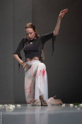 Fantasy scenery in gaming and internet cultures connects myths of nature with technology. Jette Loona Hermanis uses this specific visual language in Torque Vulnerati and makes the phenomena of self-centering and online escapism a subject of discussion. Her work is influenced by fantasy narrations and directs attention to anxieties, pains and mental states, which are expressed in digital spaces. Distorted realities and mania transfers in a fairytale; an homage to tumblr trends. On a huge stage with a fairytale fountain the choreographer and dancer creates an atmosphere which chops up any genre boundaries. This vibe could be described as Post-Internet-Dark-Romanticism.